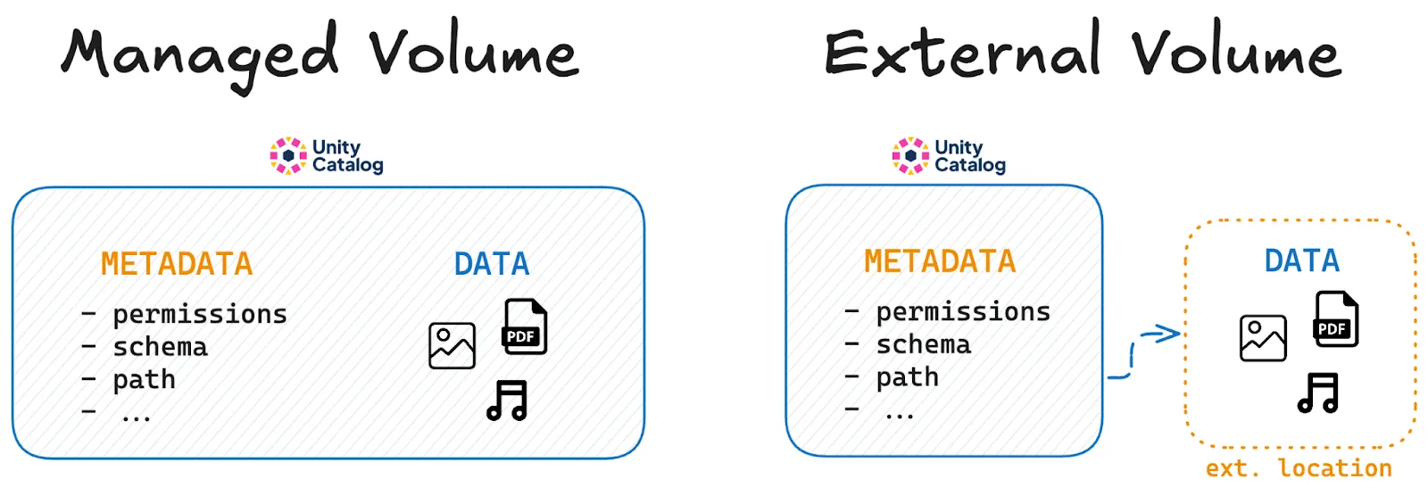 Unity Catalog gives you the freedom to use both managed and external volumes, depending on your needs.
